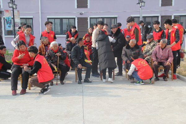 活动开展过程中,志愿者们首先表达了对老人的祝福并且细心地送上了蛋糕、牛奶、水果等慰问品,随后我校社团联中武术队、曲艺社等社团的志愿者们给老人们带来武术、相声、歌舞等精彩节目,为活动增添融洽和谐的气氛。老人们也积极参与到节目互动中,在阵阵掌声中演唱一首首经典红歌,欢声笑语充满了整个敬老院。随后,志愿者们给老人们剪指甲,捶腿,捶背、谈天说地,老人们与志愿者们分享了很多过去的故事, 同学们耐心的做着听众,静静地陪伴,每一位老人都感到十分满足。