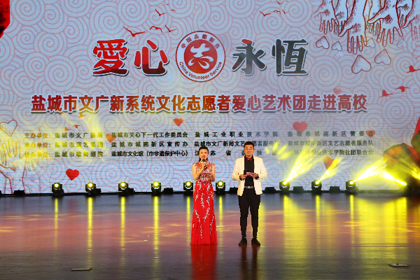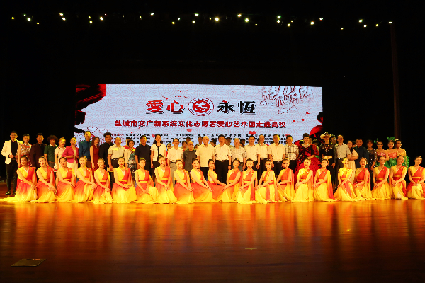 6月14日晚,学校联合盐城市文广新局、盐城市关工委、盐城市演艺集团、盐城市歌剧院等单位在大学生活动中心举办“弘扬传统 爱心筑梦”文艺演出。盐城市关工委主任陆树臻、副主任陈峰,盐城市文广新局局长季德荣、书记孙为祥、副局长唐文健,盐城市演艺集团总经理曹利卫,我校校长李仁和、副校长孙卫芳、刘必千,纪委书记徐伯静,校关工委副主任董顺锋,各职能部门、各二级学院主要负责人和1400多名师生一起观看了演出。