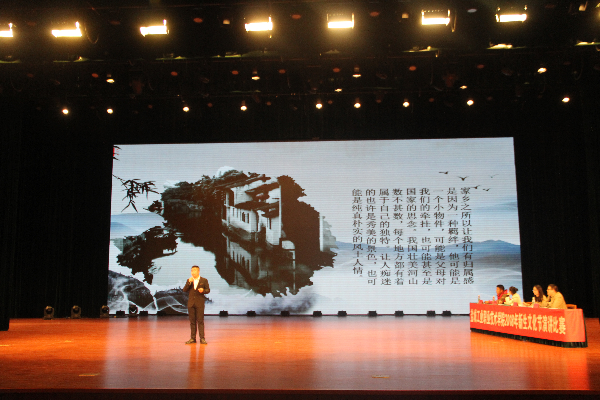 11月7日,学校第二届新生文化节系列活动之“谁不说俺家乡美——我为家乡代言”演讲比赛校级决赛在大学生活动中心剧场隆重举行。江苏医药职业学院护理学院学工办主任周媛,我校团委副书记包婷婷、财务处处长助理董礼、经贸管理学院导游专业带头人陈传亚副教授担任本次比赛的评委。