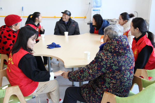 这天一大早,志愿者们就整装待发,带着满满的爱心,踏上了前往盐都福利院的道路。到达福利院后,志愿者们与老人们亲切的打招呼握手,老人们马上认出了我们其中的一些人。志愿者们马上各司其职,开始帮老人们打扫卫生;有的与老人谈心,听老人们讲述过去的事情;有的为老人们表演节目,逗老人开心:有的老人也拿出自己的绝活与志愿者一起表演,还耐心的教志愿者。那一刻,老人们开心的笑得像个孩子一样。到了中午,志愿者们给老人端上了热腾腾的饭菜,等老人都吃好了,我们细心的收拾着碗盆。在活动的最后,老人们更是亲切地与志愿者们合影并不舍的道别着。