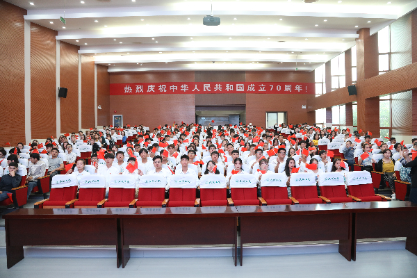 10点整,庆祝大会正式开始,雄壮的国歌奏响,代表56个民族大家庭的56门礼炮 70响轰鸣响彻云霄,现场师生集体起立,嘹亮有力的唱响国歌,抒发自己对祖国的无限热爱和美好祝福。随后,现场师生认真聆听中共中央总书记、国家主席、中央军委主席习近平重要讲话,心情无比激动,当习近平总书记强调道“没有任何力量能够撼动我们伟大祖国的地位!没有任何力量能够阻挡中国人民和中华民族的前进步伐!中国的明天必将更加美好!伟大的中华人民共和国万岁!伟大的中国共产党万岁!伟大的中国人民万岁!”现场师生热泪盈眶,掌声不断。