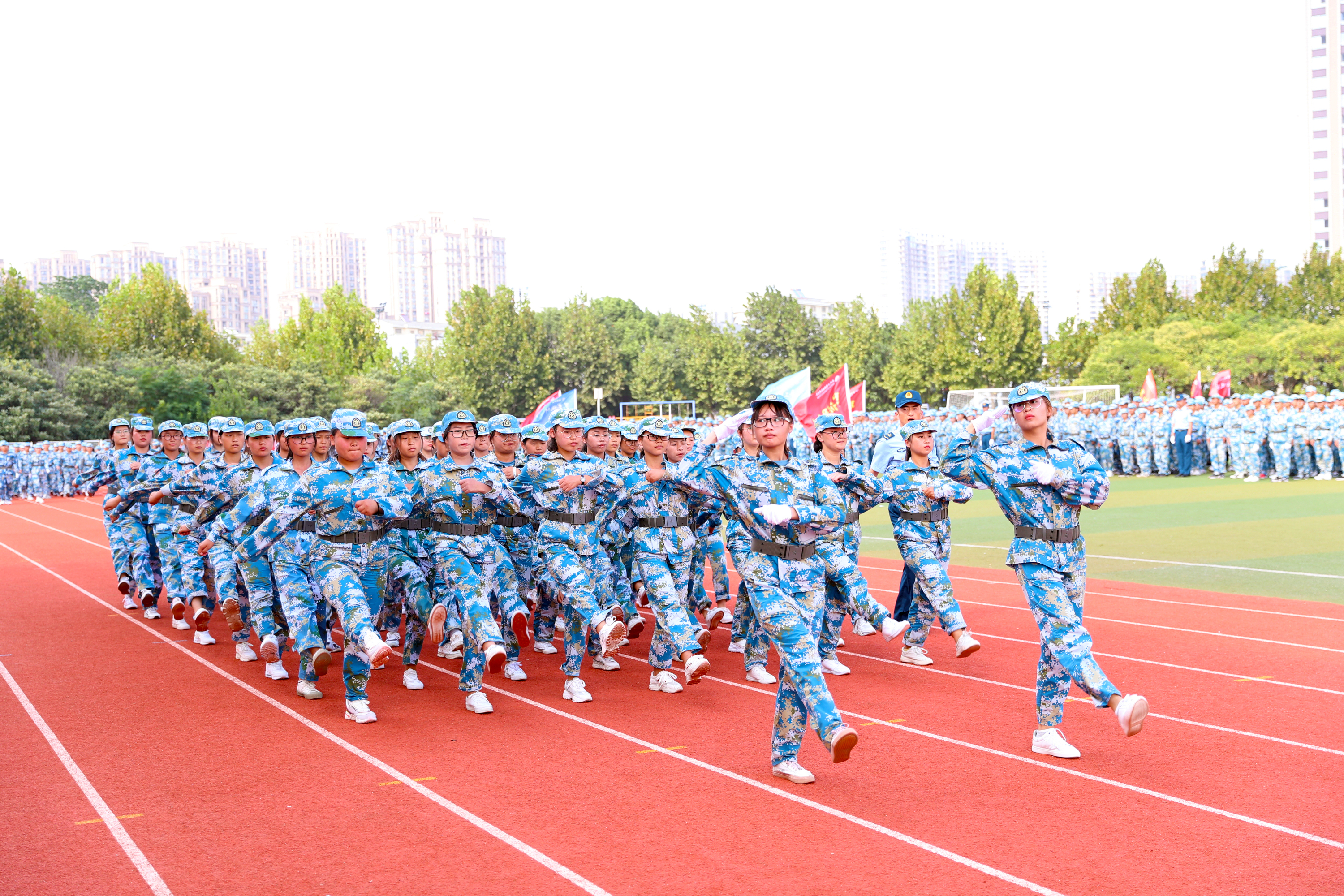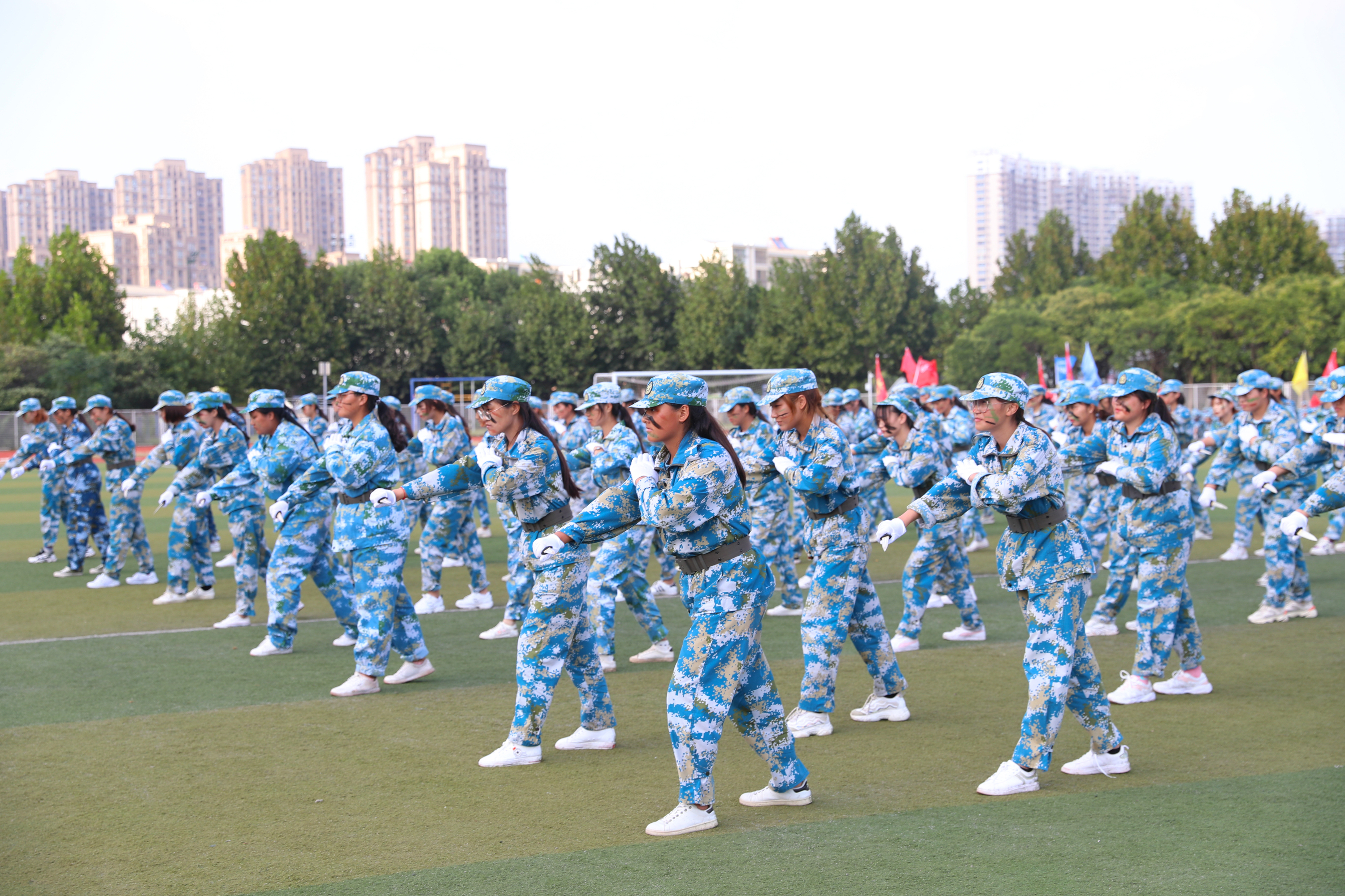 伴随着庄严的国歌声,五星红旗冉冉升起。在迎军旗、受阅方队准备完毕后,瞿才新徒步检阅了新生军训方阵。当分列式进行曲响起,同学们以高昂的士气、响亮的口号、矫健的步伐、精准的动作,意气风发地走过主席台。随后,同学们通过干净利落的擒敌拳、豪情满怀的军歌演唱、配合默契的男女混合战术、气吞万里的男子盾牌操和气势如虹的女子匕首操等军事技能表演,充分展示了本次军训的丰硕成果,赢得了现场师生的阵阵掌声。
