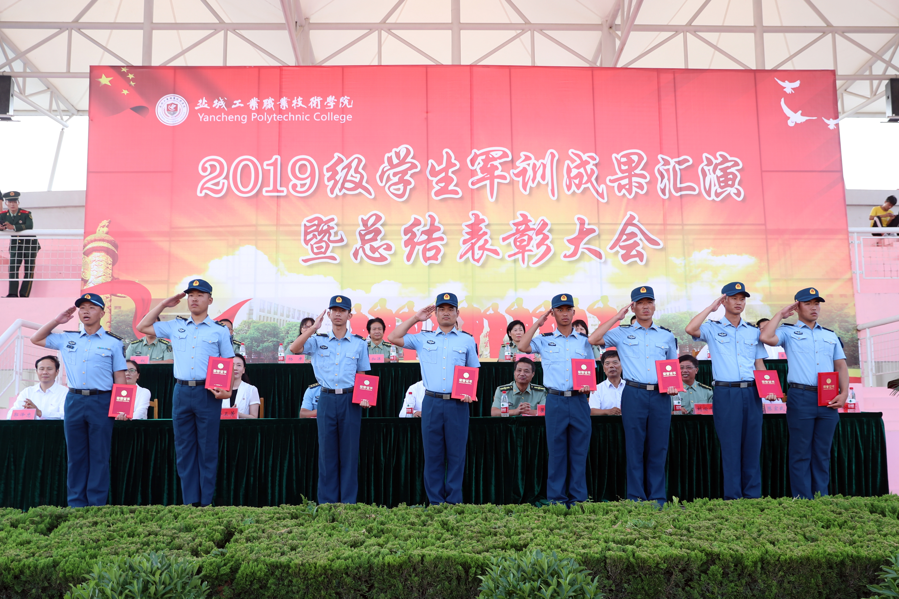 9月18日,学校在运动场隆重举行2019级新生军训成果汇报暨总结表彰大会。校党委书记邵从清,党委副书记、校长瞿才新,党委副书记张林龙,副校长孙卫芳、刘必千,纪委书记夏燕萍,驻盐空军部队副团长李晓强出席大会。各二级学院和相关部门负责人,全体教官、辅导员、班主任,以及2019级全体新生参加大会。大会由刘必千主持。