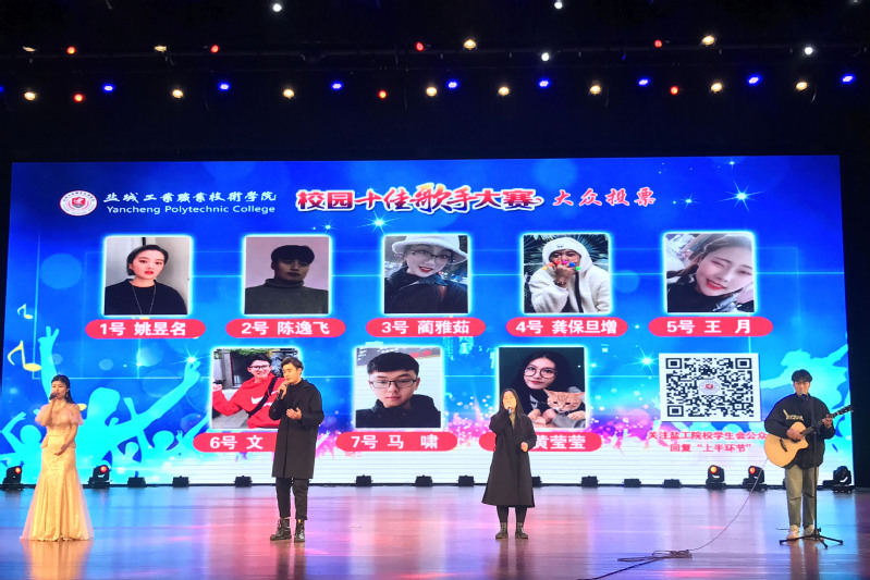 12月25日,学校第七届校园文化艺术节之“歌咏青春•唱响华章”校园十佳歌手大赛总决赛在学校大学生活动中心舞台成功举办。盐城团市委办公室主任阮成伟、统战部部长李茜,江苏医药职业学院团委副书记刘旸,我校团委书记裴华尉、副书记包婷婷,九洲药学院声乐专业教师冯露露担任评委,以及近1000名观众一起享音乐盛宴,聆听校园好声音。