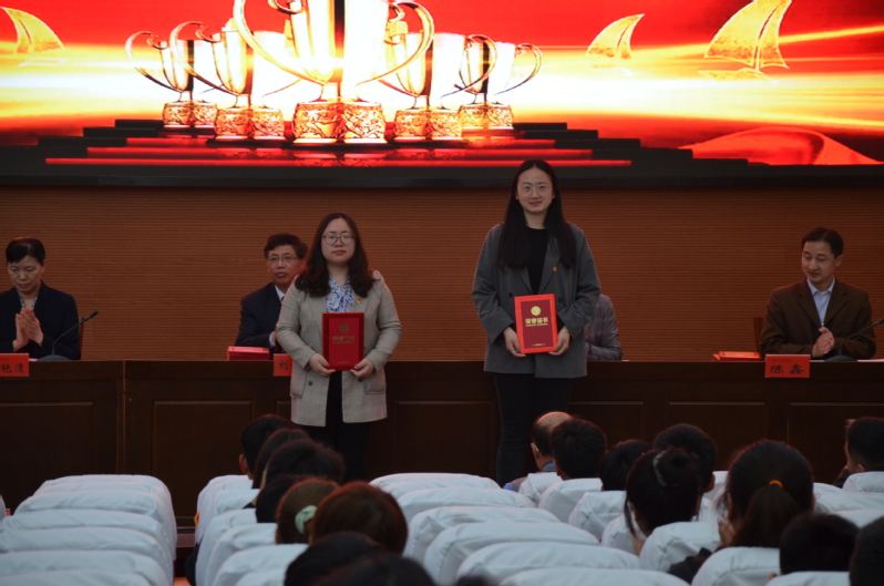 大会在庄严的国歌声中拉开序幕。周伟宣读了《关于表彰2020年度共青团工作先进集体和先进个人的决定》,共青团工作先进个人、十佳共青团员、优秀共青团员、优秀共青团干部、五四红旗团支部代表先后上台领奖。表彰大会上与会领导还为我校10名党史学习教育学生宣讲团成员颁发了聘书。团委丁钰玲老师宣读了2021年春学期团员发展名单并进行了新团员宣誓仪式。