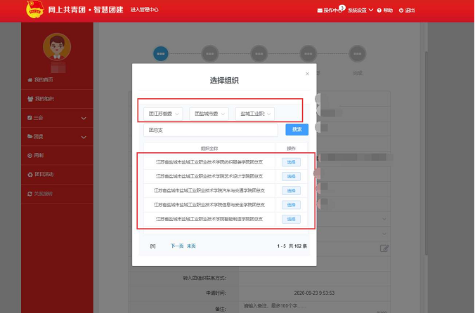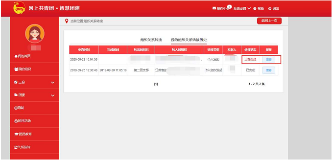 线上转接依托“智慧团建”系统开展。