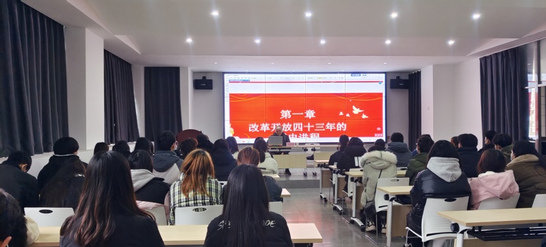 1月5日下午,学校退休老干部,校关工委讲师团成员江志学应邀来到经贸管理学院111教室,为近60名学生作题为《改革开放43周年》的专题讲座。经贸管理学院党总支书周伟主持讲座。