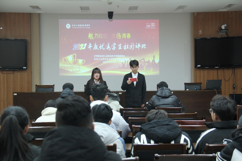 12月28日,学校团委在图文信息中心一楼第三会议室举行2021年度优秀学生社团评比活动。学校社团联合会、各二级学院社团部负责人、参评学生社团骨干代表等50人到场汇报和观摩。团委教师丁钰玲、陈经伟,校社团联合会主席团成员担任本次活动评委。