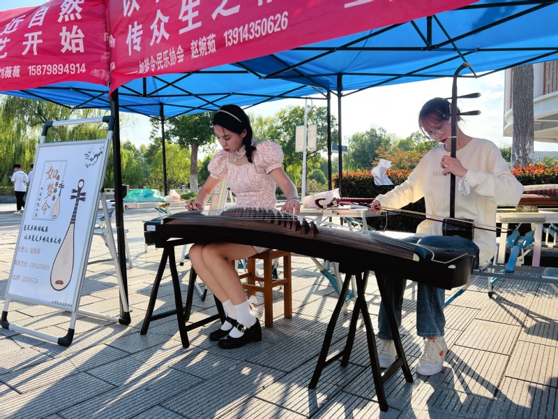 纳新现场人潮涌动,处处可见精心设计的宣传标语和海报。社团巡礼展位前,各个社团纷纷拿出了自己的“看家绝活”:书画社现场展示书法绘画作品,展现中华优秀传统文化的艺术魅力;手工布艺工坊展出一件件精美的刺绣作品,引得过往师生驻足欣赏;唱响音乐社给观众们带来一首又一首青春洋溢的歌谣;吉他社拿出吉他、电钢琴等乐器进行弹奏;此外还有优美的华尔兹、精彩的无人机飞行秀、刺激的花样滑板技巧展示等。