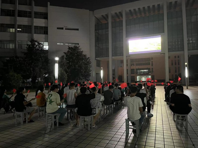 10月1日至3日,校团委组织开展“国庆共观影,一同贺华诞”——迎国庆观影活动。来自八个二级学院的千余名同学分别在学术报告厅、公共教学楼露天影院观看了《我和我的祖国》、《我和我的父辈》、《我和我的家乡》系列电影。“国庆假期不用出校门就能观看好看的电影!”“和同学们一起观影的感觉真棒,看完电影我感觉生为一名中国青年,背后有我们强大的祖国,真是太幸福了!”“看完电影,我有点想家了,不过假期老师和同学们在一起观影,这种体验也很酷!”观影首日,《我和我的祖国》放映结束,同学们自发挥动着手中的小国旗,高唱着“我和我的祖国一刻也不能分割,无论我走到哪里都流出一首赞歌……”