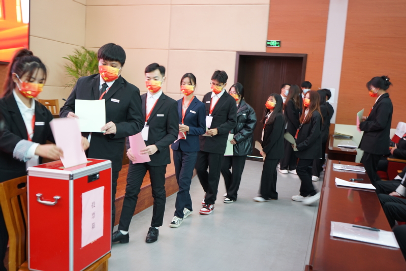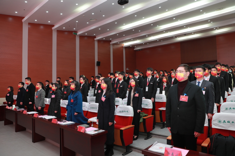会议闭幕式由团委丁钰玲老师主持,本次大会秉持公平、公正、公开的原则,经不记名投票,以差额的方式从18位学生委员候选人中选举产生15名学生委员会委员,从7名校学生会主席团成员候选人中选举产生5名校学生会主席团成员。闭幕式上学校第五届学生委员会主席团成员黄乐乐宣读了《盐城工业职业技术学院第五次学生代表大会倡议书》,他向全校同学发出:坚定信念,励志勤学,提高政治站位;开拓创新,知行合一,增进青春才干;牢记使命,锤炼意志,勇担时代重任的青春倡议。