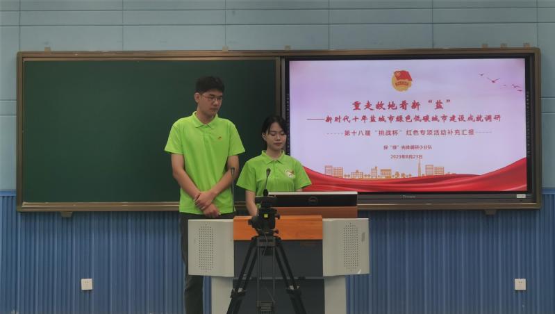 校学生会邱杨飞、唐潇、韦忠诚等同学的《重走故地看新“盐”——新时代十年盐城市绿色低碳城市建设成就调研》和建筑工程学院杨成龙、薛磊山、曹缘等同学的《守一方非遗文脉 开现代生活新篇--盐城地方非遗保护现状及融入高校美育的路径探索》获得二等奖;经贸管理学院赵婉茹、路嘉欣、闫盈等同学的《赓续红色血脉 传承红色经典——盐城红色文化进景区实践案例研究》、药品与健康学院陈羡姿、章意、徐闻灿等同学的《忆往昔峥嵘,活红色资源,砥奋斗新姿——连云港赣榆“一山一岛一馆一村”红色研学路线赋能乡村振兴调研报告》获得三等奖。