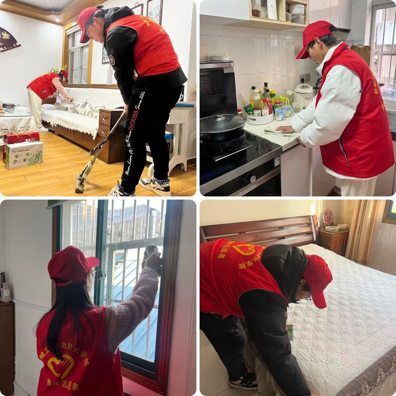 在社区工作人员带领下,青年志愿者们逐户前往片区孤寡老人家中,为老人们送去慰问品,为他们整理房间、擦窗户、收拾被褥、检查厨房等重点区域安全隐患。随后,青年志愿者们与老人闲话家常,给老人们讲述大学校园的故事,聆听他们生活中的烦恼,并详细为他们介绍近期预防甲流、支原体肺炎等注意事项,现场温情暖暖、其乐融融。