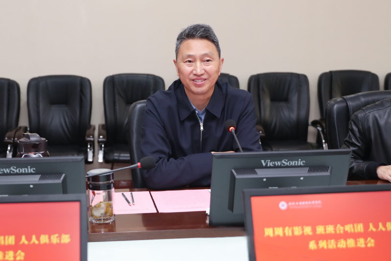 4月12日,学校在图文信息中心第一会议室召开“周周有影视 班班合唱团 人人俱乐部”系列活动推进会。校党委书记邵从清出席会议并讲话。副校长陈宏武主持会议。