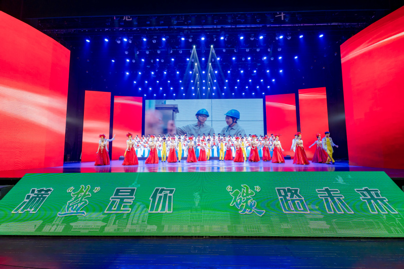 晚会上,学校金话筒主持团三名学生代表与兄弟院校共同合作演绎《青春誓言》,他们以青春的名义许下庄严承诺,誓言要在未来的学习和生活中不懈奋斗,为实现中华民族伟大复兴的中国梦贡献青春力量。学校百人大合唱《强国有我》将现场气氛推向了高潮,用嘹亮的歌声表达了对国家的热爱和对未来的憧憬,传递出当代青年“请党放心,强国有我”的坚定信念和豪迈情怀。