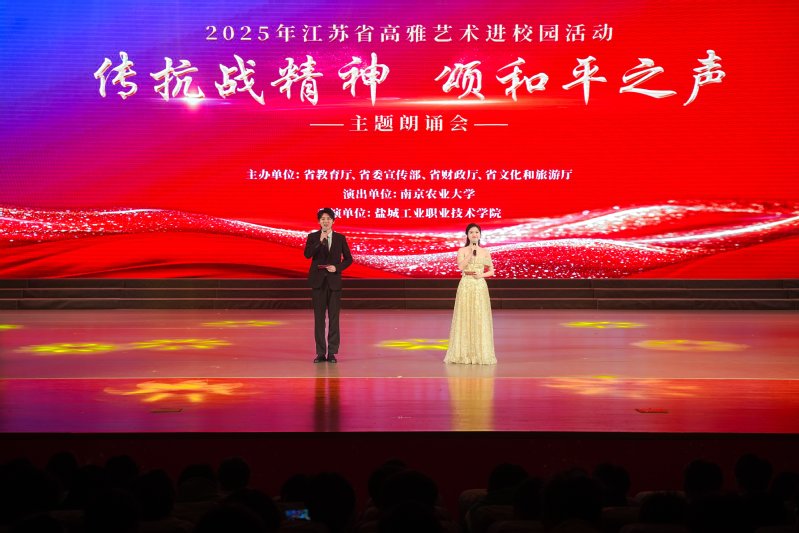 11月16日,2025年江苏省高雅艺术进校园活动——南京农业大学专场朗诵会“传抗战精神 颂和平之声”在我校大礼堂成功上演。