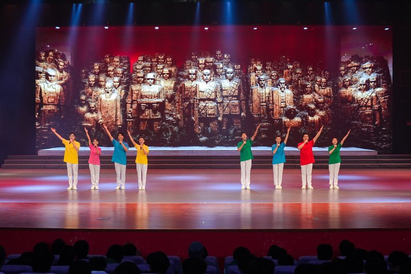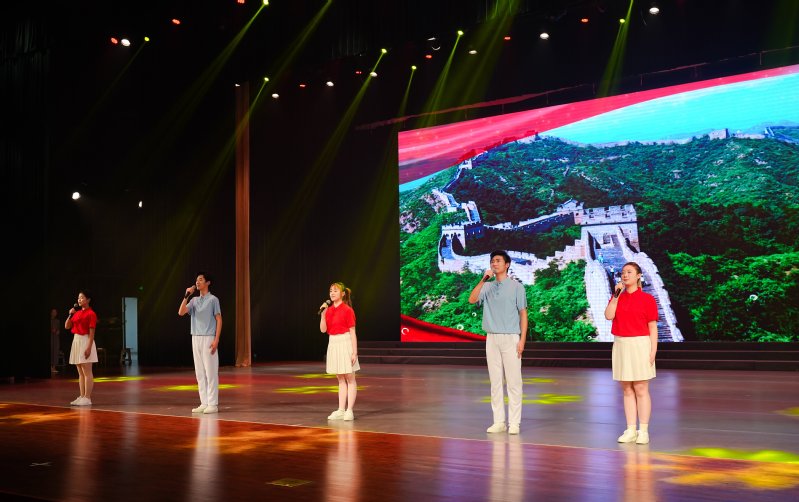 在第一篇章“追寻光”中,作品《新的长城》、《铸》、《西迁》接连上演,表演者以铿锵有力的语调,勾勒出民族危难中不屈的精神图谱,引领观众“追寻”那段永不褪色的民族记忆。在第二篇章“沐浴光”中,舞蹈《风声》、原创情景朗诵《誓言》、婉约悲壮的《旗袍言芳华血》与经典名作《呼兰河传》以细腻笔触诉说岁月温情,让观众在光影流转间感受希望与力量的浸润。在第三篇章“成为光”中,《银杏记得》、《青春的阵线》、《可爱的中国》、《青春向祖国报告》等经典诵读作品表现出当代青年的热血担当,以激昂声韵传递信心与力量。