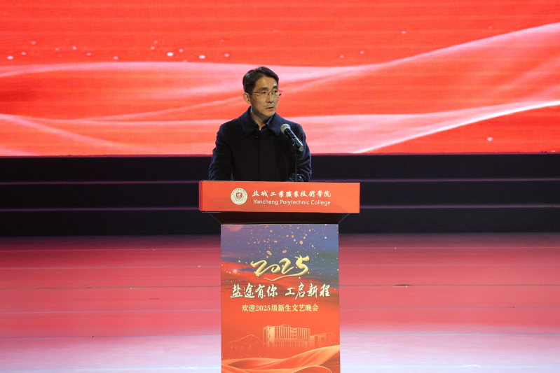 11月21日,“盐途有我 工启新程”欢迎2025级新生文艺晚会在学校大礼堂成功举办。党委委员、副校长陈宏武出席活动并致辞。
