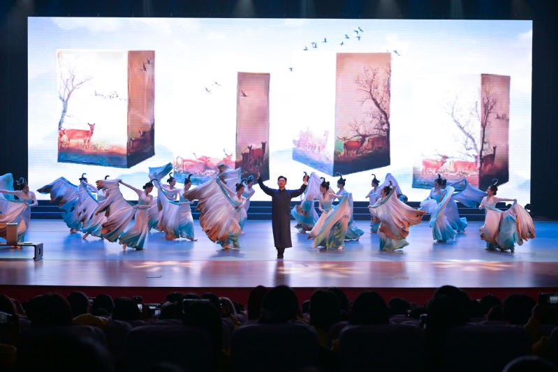 第一篇章赓续·承薪火中,情景剧《觉醒》再现了百年前先进青年用鲜血和生命“点燃”时代的觉醒;歌伴舞《如愿》诉说着先辈们许下的赤诚心愿,如何在今日的阳光下一一绽放;情景朗诵《青春作答》将一段跨越时空的青春对话娓娓道来。第二篇章相聚·耀盐工中,幕布剧《与你有约》演绎了新生与盐工院温情的“约定”;歌曲联唱《最美的相遇》带领观众们一同在青春的音符里,回味相遇的感动;舞蹈《镌刻初心》以灵动的身姿,诠释瓷刻艺术的雅致,让瓷刻传统文化在舞动光影中绽放新彩。第三篇章挺膺·向未来中,青春动感的模特走秀《似锦繁花》、充满异域风情的歌舞串烧《丝路韵》、英姿飒爽的跆拳道表演《青春当“燃”》将晚会推向一个又一个高潮,引得现场观众阵阵喝彩。尾声歌伴舞《强国有我》表达了青年学子对时代的庄严应答,对青春的无悔告白。晚会在全场大合唱校歌《追逐梦想》中落下帷幕。