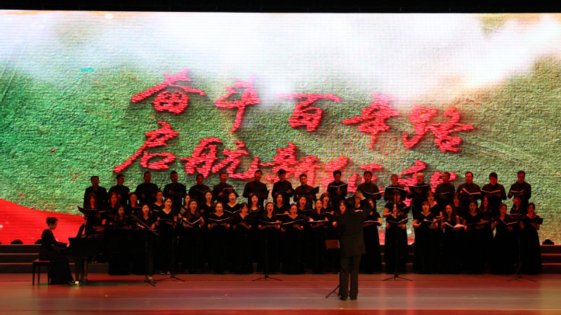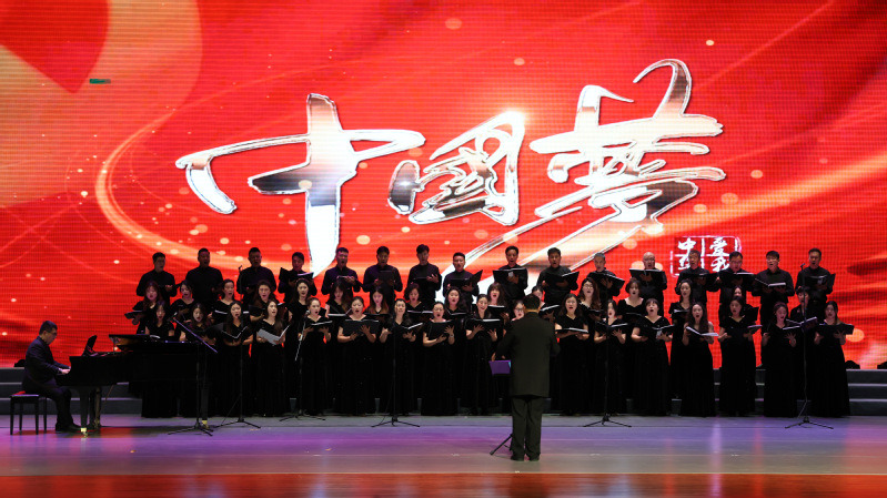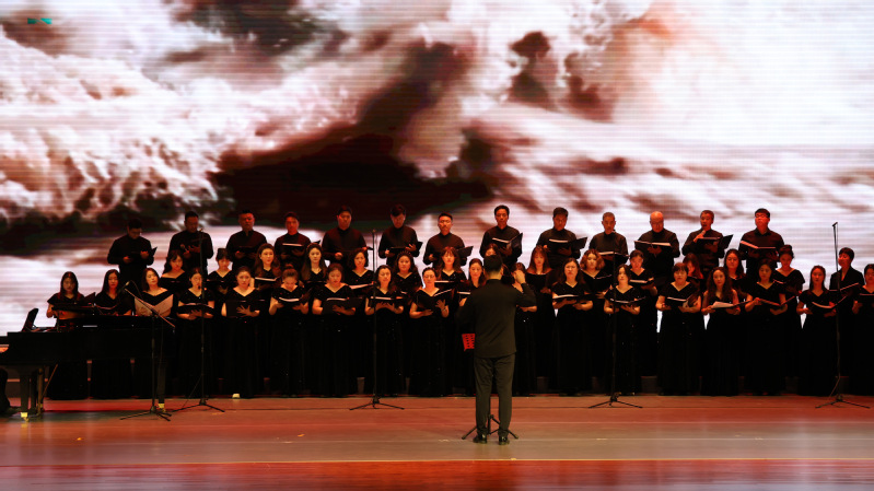 下半场合唱组歌《奋进新时代》奏响时代华章。领唱合唱《嫦娥与我》以空灵之音描绘航天梦想,《高铁来了》以明快节奏展现中国速度与乡村振兴的壮美图景,混声合唱《我向往》抒发对美好未来的无限憧憬,领唱合唱《金不换银不换》诠释了绿水青山就是金山银山的深刻内涵,《一个都不能少》以脱贫攻坚为主题,唱响共同富裕的坚定信念,《新时代的光芒》以全场大合唱的形式,讴歌伟大复兴的壮阔征程。整场演出以音乐为笔,绘就了一幅从历史走向未来的时代画卷。