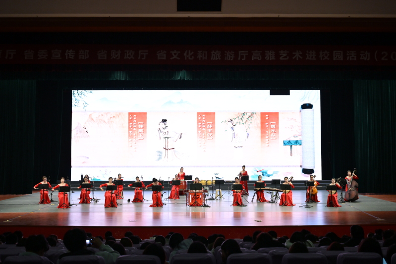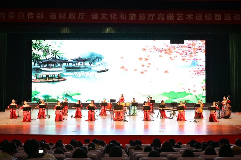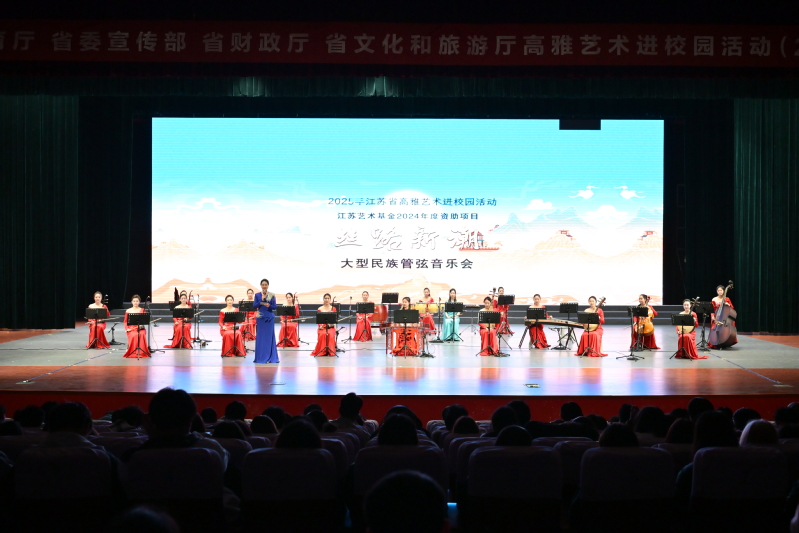 3月25日,江苏省高雅艺术进校园活动——《丝路新潮》民族管弦乐音乐会在学校大学生活动中心礼堂精彩上演。本场音乐会由享有“民乐茉莉,丝路之花”美誉的江苏女子民族乐团倾情演绎,该乐团为全校师生带来了一场融合传统民乐魅力与丝路时代内涵的高雅艺术盛宴。