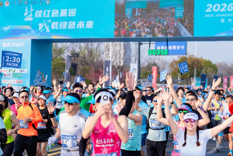 3月29日,2026年盐城马拉松比赛在奥体中心鸣枪开跑,学校430名青年志愿者以饱满的热情、细致的服务为赛事奉献青春力量。
